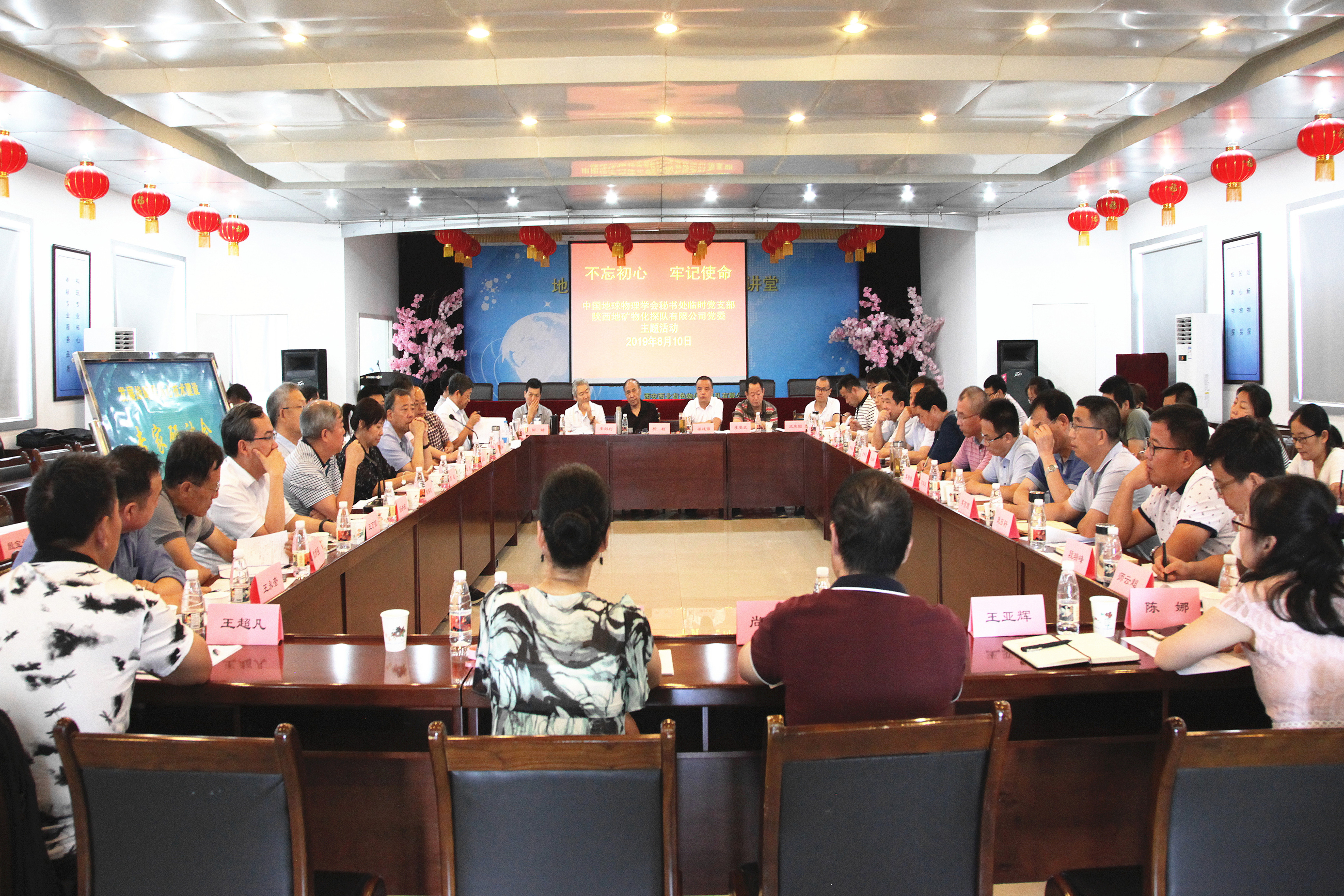 ? ? 2019年中國(guó)地球物理學(xué)會(huì)“地球物理科技推廣專家大講堂”會(huì)議期間,一場(chǎng)由中國(guó)地球物理學(xué)會(huì)臨時(shí)黨支部、陜西地礦物化探隊(duì)有限公司黨委共同舉辦的“不忘初心,牢記使命”主題黨日活動(dòng), 8月10日在西安舉行。