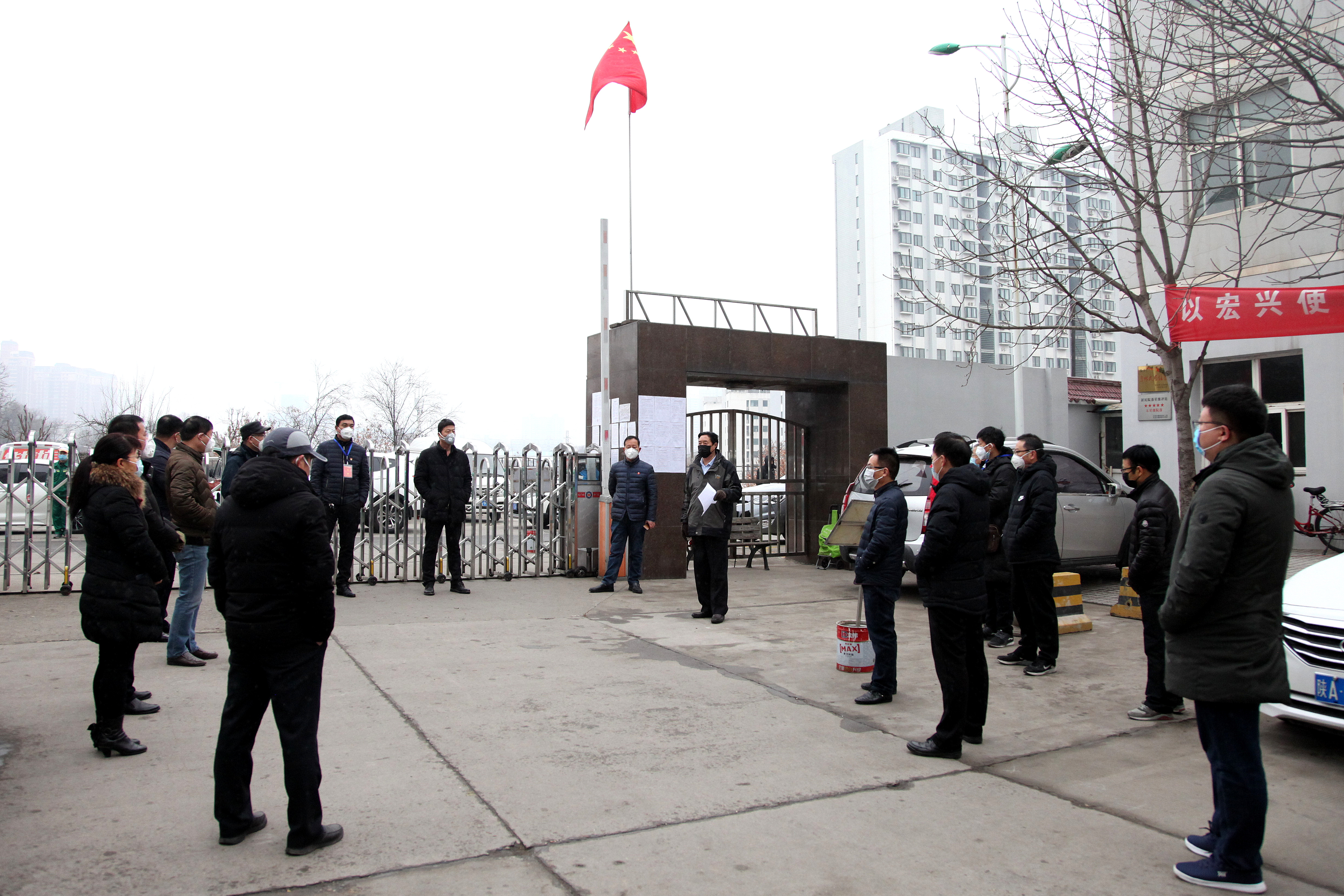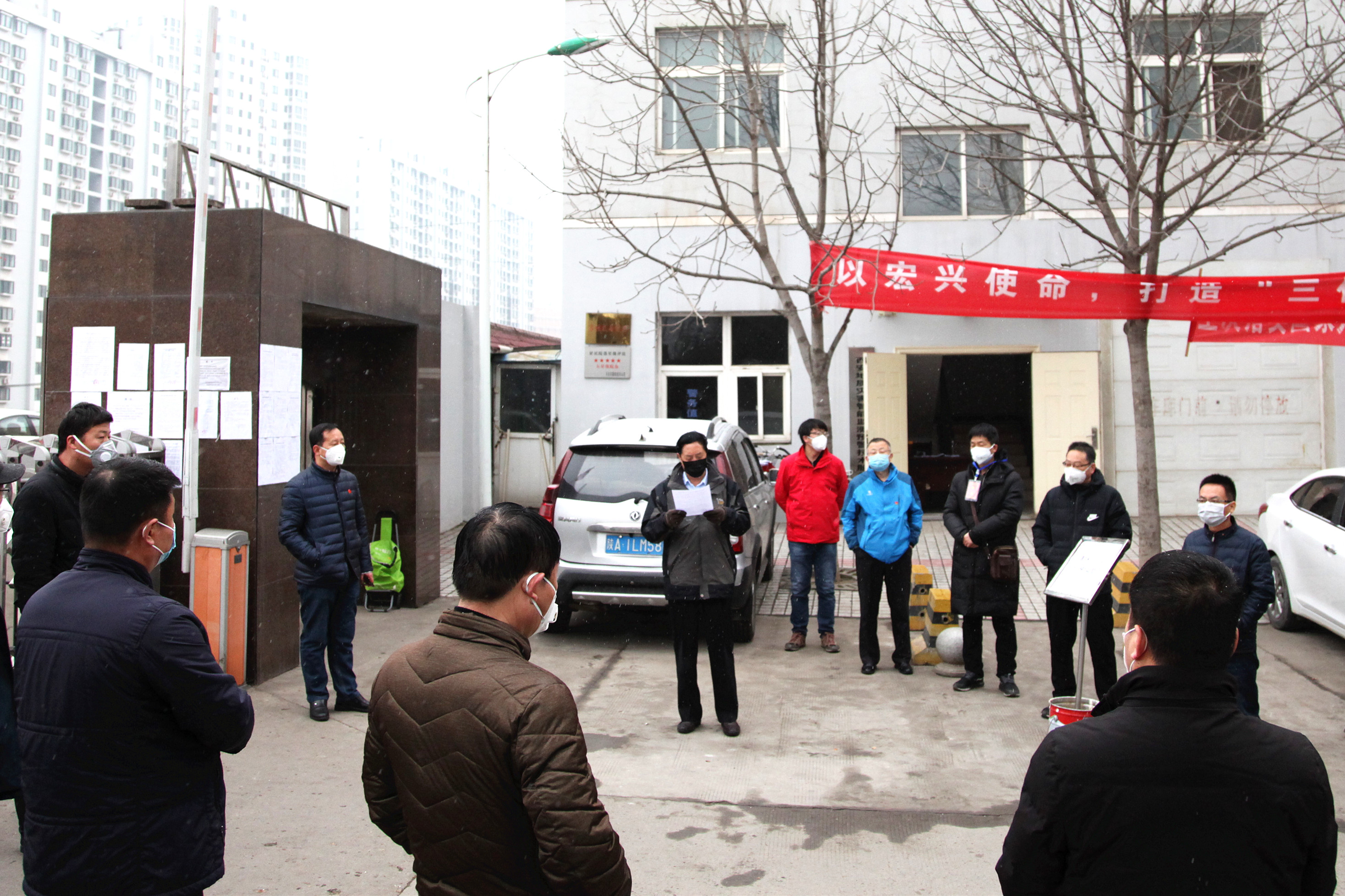 ??? 2月6日上午,黨委書記、執(zhí)行董事、總經(jīng)理王新坪在單位小區(qū)門口值班現(xiàn)場(chǎng),冒著小雪主持召開(kāi)了中層以上干部緊急會(huì)議,對(duì)前期疫情防控工作作了簡(jiǎn)要總結(jié),對(duì)下一步工作做了再部署、再落實(shí)。