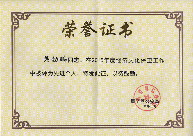 ? ? 物化探隊周至管理處,以周至縣積極開展創建“平安單位”活動為契機,以“保障單位安全,維護內部穩定,促進社會和諧發展”為目標,持續推進內部治安防控體系建設,為經濟文化保衛工作做出了貢獻。在3月23日周至縣公安局召開的《2015年度經文保工作總結表彰暨2016年工作安排部署會議》上,吳勃鵬同志被周至縣公安局評為2015年度經文保工作先進個人。