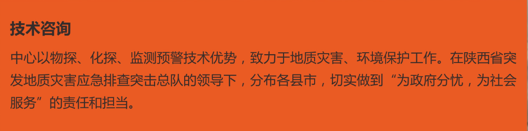 西安地質災害監測技術服務中心(以下簡稱地災服務中心),成立于2016年,隸屬陜西省突發地質災害應急排查突擊總隊,辦公地址設在物化探隊。地災服務中心本著“為政府分憂,為社會服務”的宗旨,以其先進的物化探勘查技術和先進的智能監測預警技術在地質災害的勘查、監測 、預報 、防災 、減災等方面發揮至關重要的作用,并對地災應急做出快速反應,全面、準確地為各級政府及國土資源部門的地質災害、搶險救援等工作提供決策建議和技術支撐,最大限度地避免或減少突發地質災害造成的損失,保護人民群眾生命和財產安全。